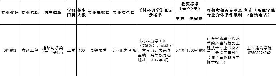 1.2022年试点高职院校(我校三二分段专升本转段对口的试点高职院校为广东交通职业技术学院)招收、符合有关文件要求的三二分段专升本应用型人才培养的全日制学生。